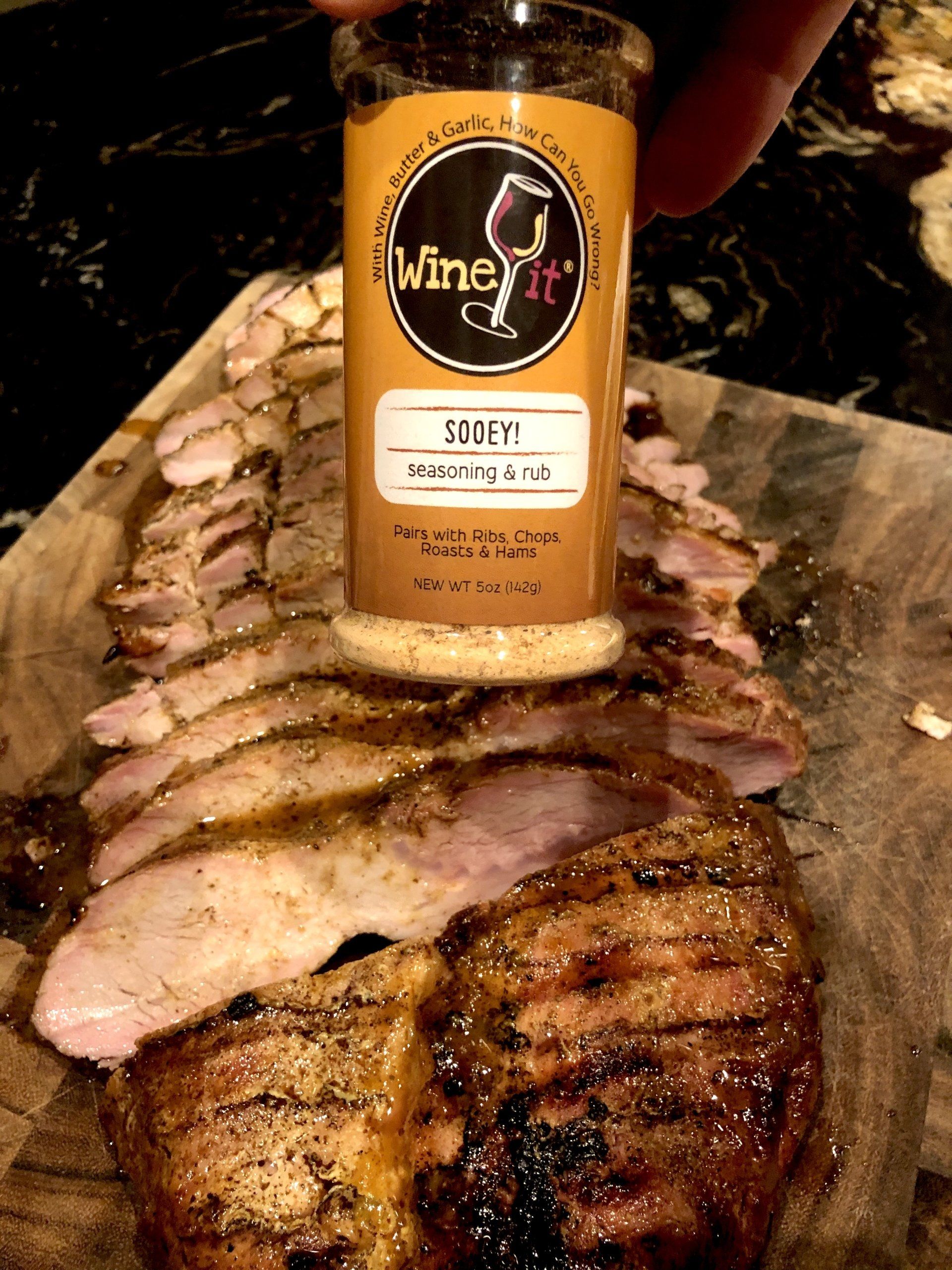 90 Minute BBQ Spare Ribs Ingredients 2 Full racks St. Louis style cut spare ribs 8 Tbsp Wine It® Sooey! Seasoning & Rub 1 Cup Sooey! BBQ Sauce (See recipe below) Instructions Light your grill (I prefer wood grills but gas will work too) and bring temperature to 325 degrees. (300 degrees if using kamado style grill/smoker). While grill is heating up, lay out ribs on large sheet pan and trim off the silver skin on the bone side of ribs. Use a sharpened fillet or paring knife to lift off one end of the silver skin. Use a paper towel to grab ahold of loosened silver skin and pull it off the rack of ribs. I use the cap of the Sooey! jar to fill it with Sooey! seasoning to season one side of rib rack (one capful equals two tablespoons of seasoning/rub). Fill cap again with Sooey! and repeat on other side of rack and repeat steps with the other rack of ribs. Place the two rack of ribs bone side down on the grill and cover with grill lid. Let it do its thing for about 45-60 minutes. Next, brush BBQ sauce on both sides of ribs and wrap each one in butcher paper or heavy-duty foil. Drop temperature to 250 degrees and cook for another 20-30 minutes. Remove ribs from grill, set on sheet pan to rest then cut into individual ribs. For Sooey! BBQ Sauce Ingredients 1 cup ketchup ¼ cup yellow mustard ¼ cup apple cider vinegar ¼ cup pure cane syrup 2 Tbsp Wine It® Sooey! Seasoning In medium sauce pan add cider vinegar, ketchup, mustard, and cane syrup (may use honey or even maple syrup). Stir to thoroughly mix. Heat on medium flame. Add Sooey! seasoning and stir to mix it in. Partially cover pan with lid and cook on medium low for 10 minutes. Remove from heat until ready to use.